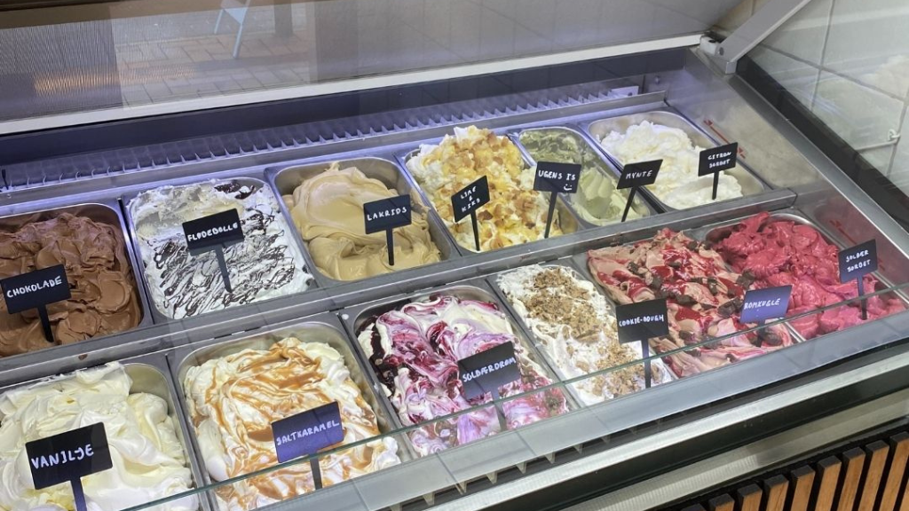 The café has 15 seats inside and outside, but you can also grab your ice cream to go for a stroll through Haderslev – whether it’s to the harbor, the lake, or along the pedestrian street.